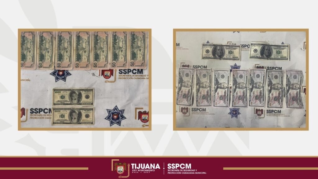 TIJUANA, Baja California a 10 de marzo de 2026, La Secretaría de Seguridad y Protección Ciudadana Municipal, aseguró a una mujer identificada como presunta responsable de llevar a cabo transacciones con dinero falso y de intentar sobornar a oficiales de la Policía Municipal con dólares apócrifos, con el objetivo de evadir su detención.
