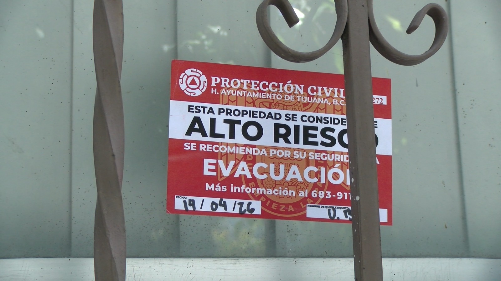 TIJUANA, Baja California, 17 de abril de 2026.— Hace apenas 3 días fueron colocados 57 engomados de riesgo amarillo y nueve rojos en la calle Casiopea de la delegación Sánchez Taboada, según información de Protección civil Municipal y ante el desconcierto de los vecinos.