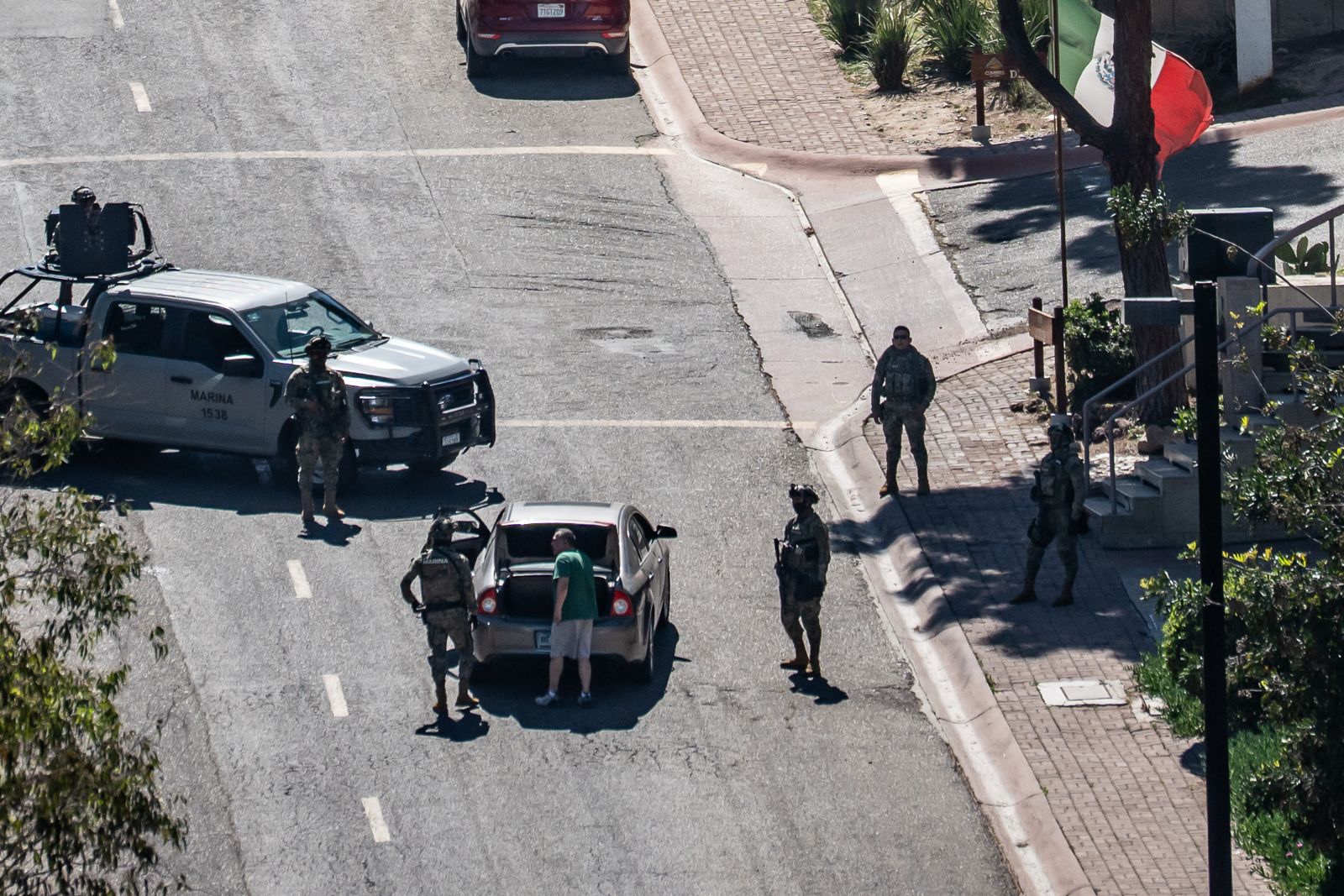 Las acciones se llevaron a cabo sobre la avenida Paseo Mil Cumbres, donde elementos de la Secretaría de la Defensa Nacional (SEDENA) y de la Secretaría de Marina (SEMAR) implementaron un cerco de seguridad en apoyo a personal de la Fiscalía General del Estado (FGE), quienes encabezaron las diligencias.