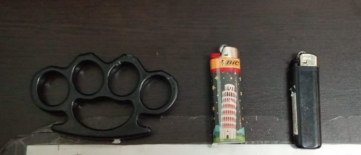 Durante la revisión, los oficiales le localizaron al sospechoso una manopla y dos encendedores entre sus prendas, siendo el primer objeto catalogado como arma prohibida.