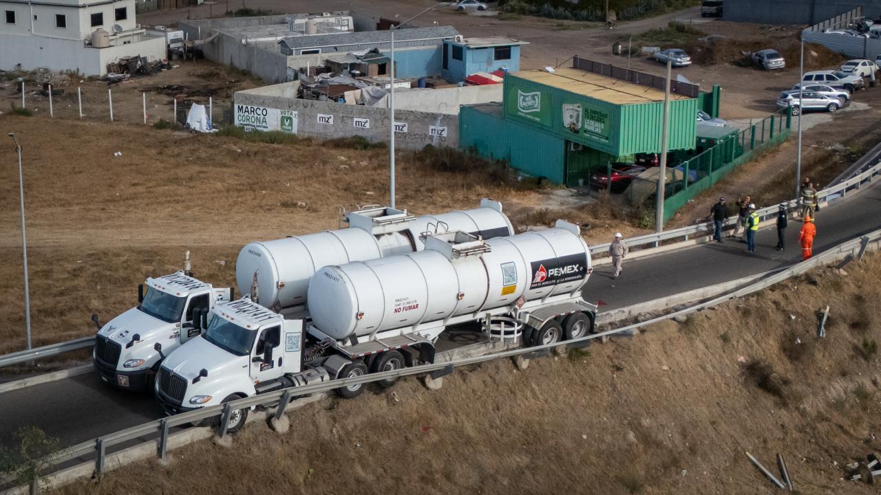 TIJUANA, Baja California a 16 de abril de 2026, Una pipa de transporte de combustible de Petróleos Mexicanos (Pemex) estuvo a punto de volcarse tras salirse del camino sobre la autopista Tijuana–Ensenada, a la altura de la colonia Constitución, en las inmediaciones del puente Machado en Playas de Rosarito.