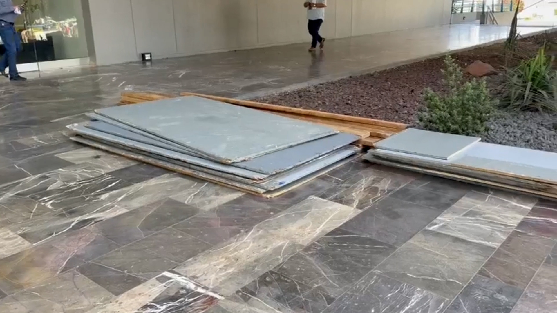 En el edificio del Poder Judicial, desde temprano fueron colocados en el piso, a las afueras del inmueble, los tablones de madera que serán utilizados para proteger las oficinas.
