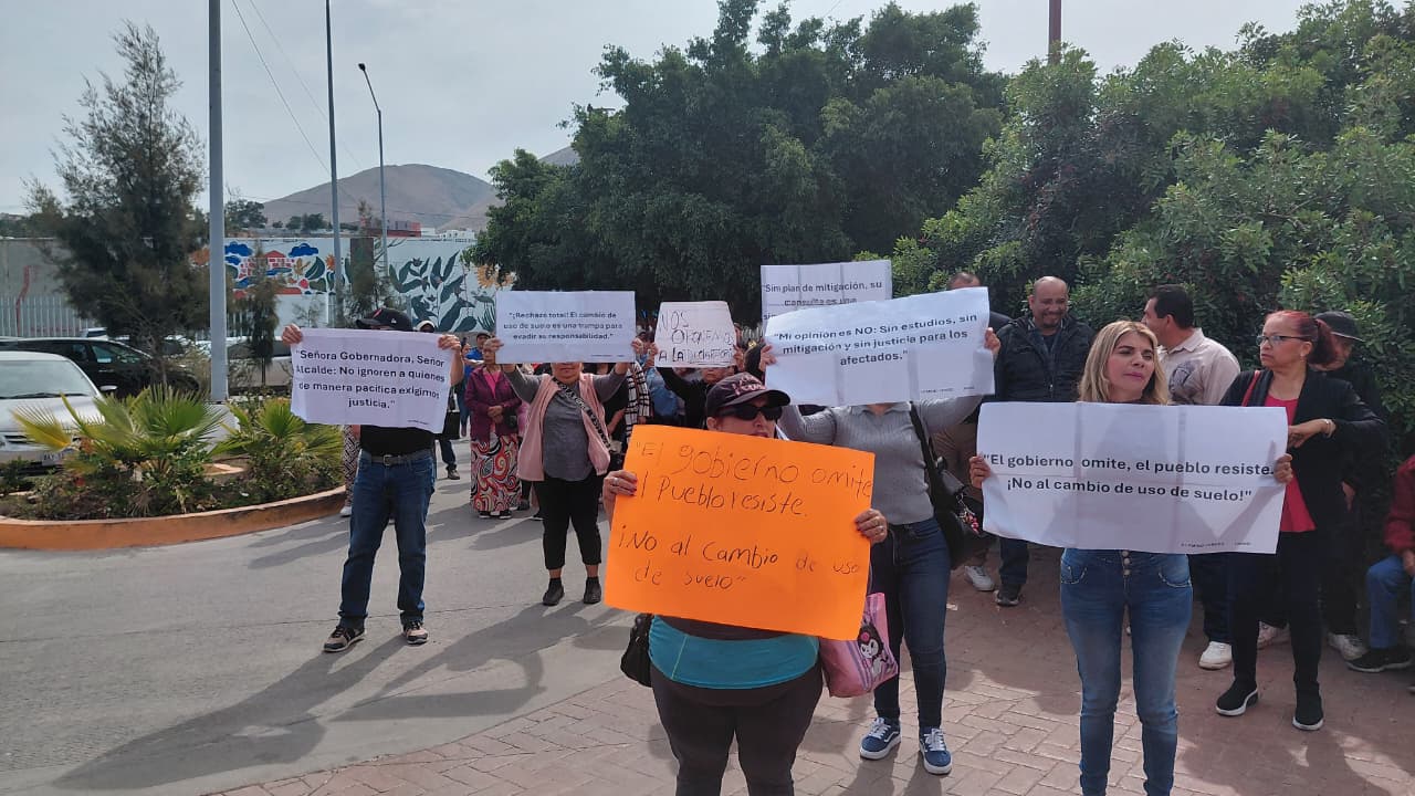 El grupo de aproximadamente 80 ciudadanos ingresó con pancartas y consignas al interior de las oficinas del Instituto Municipal de Planeación, donde entregaron las hojas de inconformidad de más de 400 personas con relación al cambio de uso de suelo a “no habitacional”. En el sitio, Armando Noriega, también representante del comité, mencionó que más que una manifestación, era un llamado a la autoridad para que pusiera especial atención en este problema que está latente desde que inició la actual administración de Baja California.